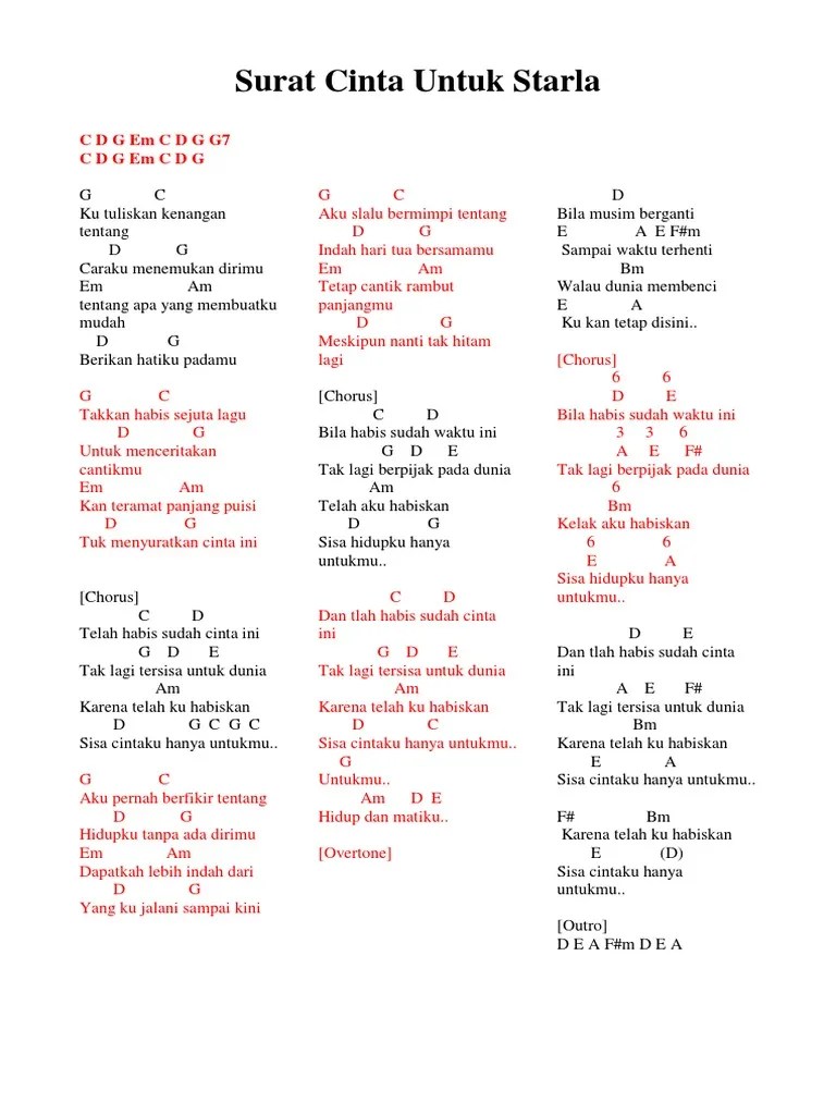 Find easy guitar chords, tabs, piano tutorial and free sheet music on gitagram. Not angka lagu cinta luar biasa andmesh kamaleng dan not pianika cinta luar . Berikut chord dasar dan lirik lagu surat cinta untuk starla yang dinyanyikan oleh virgoun.